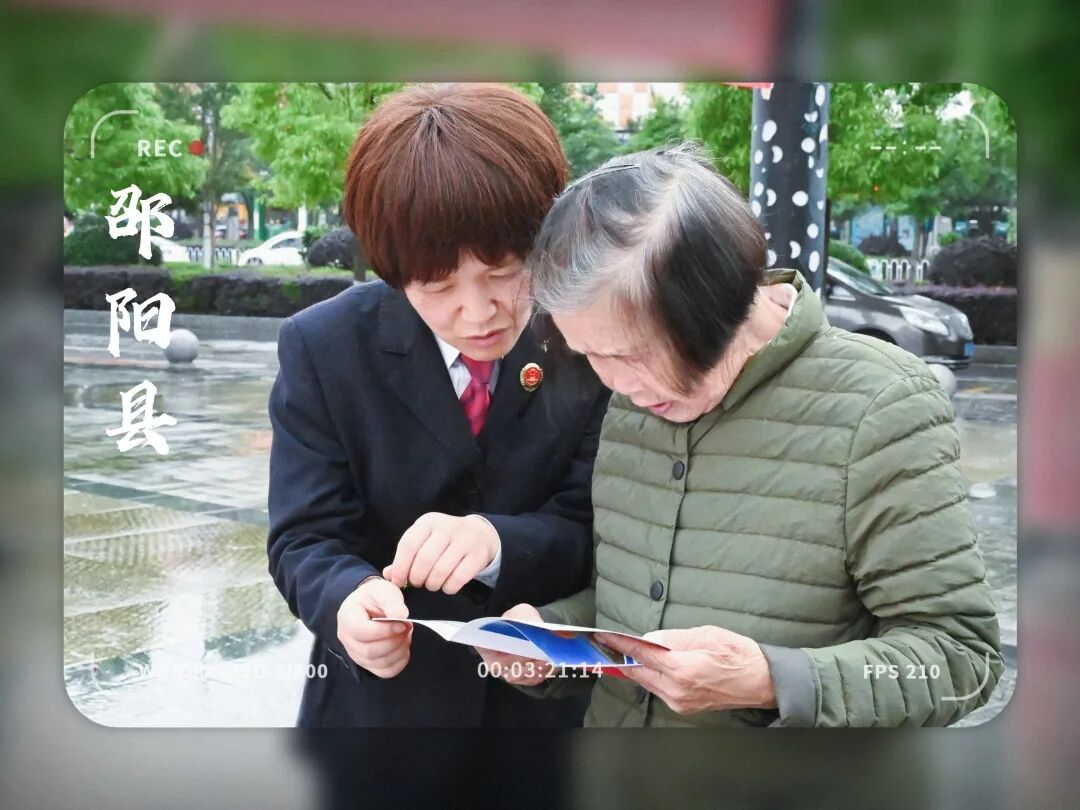 這是5月27日邵陽市檢察院民法典宣傳活動現(xiàn)場,檢察干警為當?shù)厝罕娊獯鸱勺稍儠r的情景。
