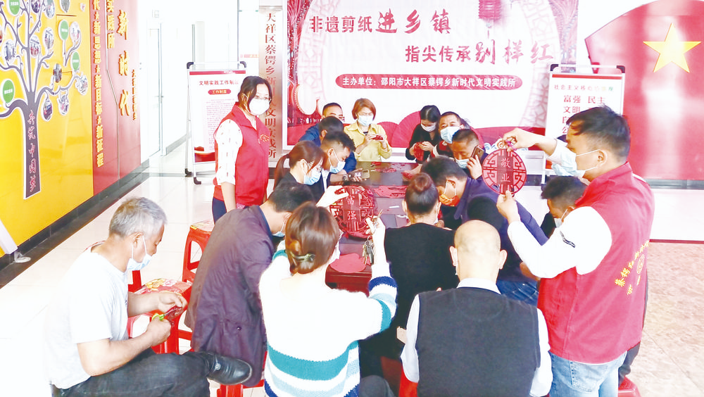 大祥區(qū)蔡鍔鄉(xiāng)新時(shí)代文明實(shí)踐所開展“非遺剪紙進(jìn)鄉(xiāng)鎮(zhèn),指尖傳承別樣紅”活動