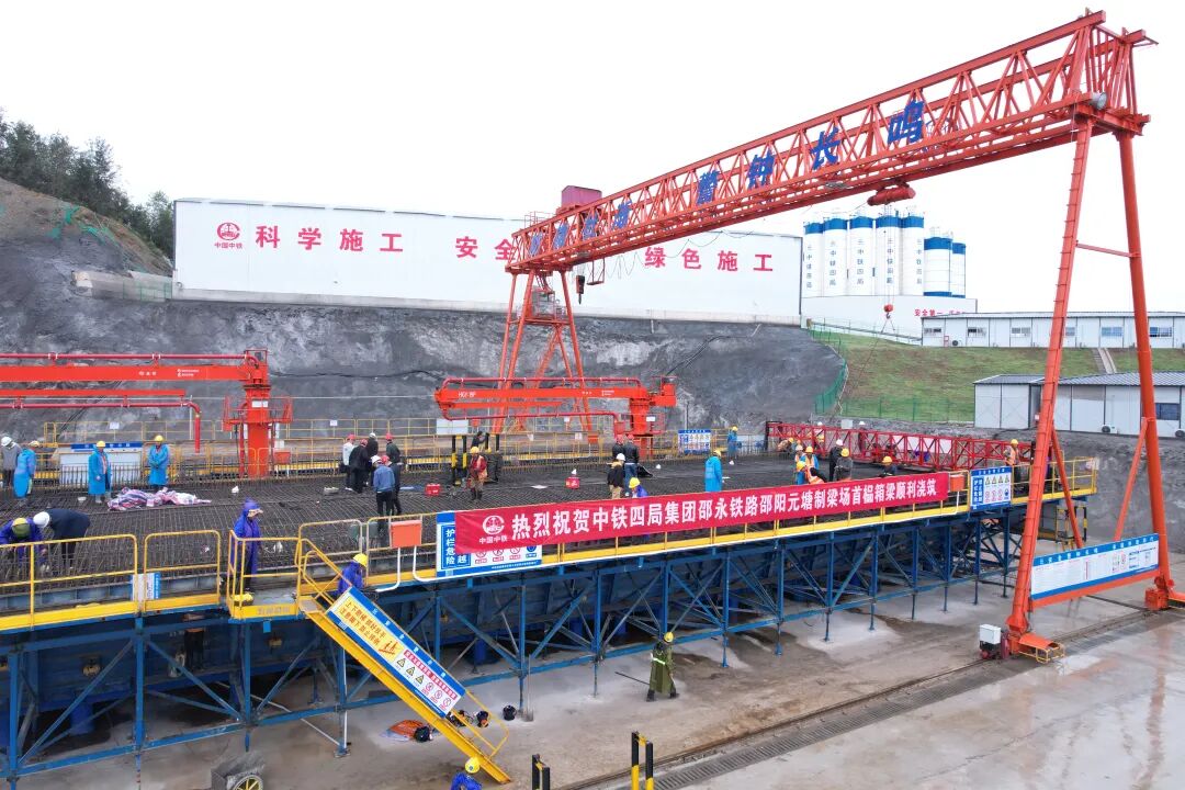 2024年10月22日,由中鐵四局承建的邵永鐵路1標(biāo)邵陽(yáng)元塘制梁場(chǎng)首榀箱梁開(kāi)始澆筑。