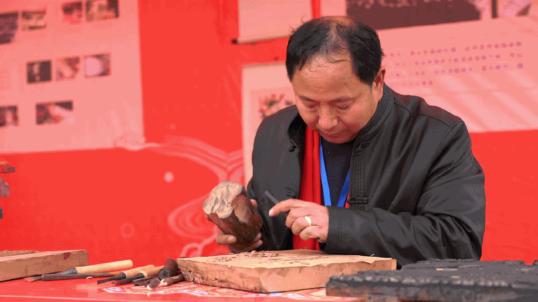 “村晚”搭臺,現(xiàn)場還能逛非遺集市、購特色年貨。走進非遺集市,灘頭年畫、花瑤挑花等非遺項目令人目不暇接。一旁擺放的灘頭年畫成品、文創(chuàng)作品也吸引了不少觀眾選購。在“年貨一條街”,山界紅糖、金銀花、臘肉、豬血丸子、高平水酒、“三辣”等年貨琳瑯滿目,讓不少本地群眾及外地游客興致勃勃,邊吃邊逛,不時駐足詢問購買。