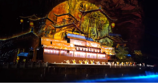 《巫水河邊月正圓》是第三屆邵陽旅游發(fā)展大會(huì)的重點(diǎn)文旅項(xiàng)目之一,也是全國首個(gè)水上苗鄉(xiāng)數(shù)字環(huán)游項(xiàng)目,總游覽路線約為 2.6 公里,總時(shí)長約 60 分鐘。行船夜游與數(shù)字光影技術(shù)的結(jié)合,為游客呈現(xiàn)了一場(chǎng)沉浸式的劇場(chǎng)體驗(yàn)。