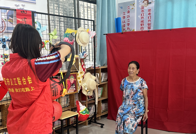 “拾光小鋪”志愿者為老人拍攝照片