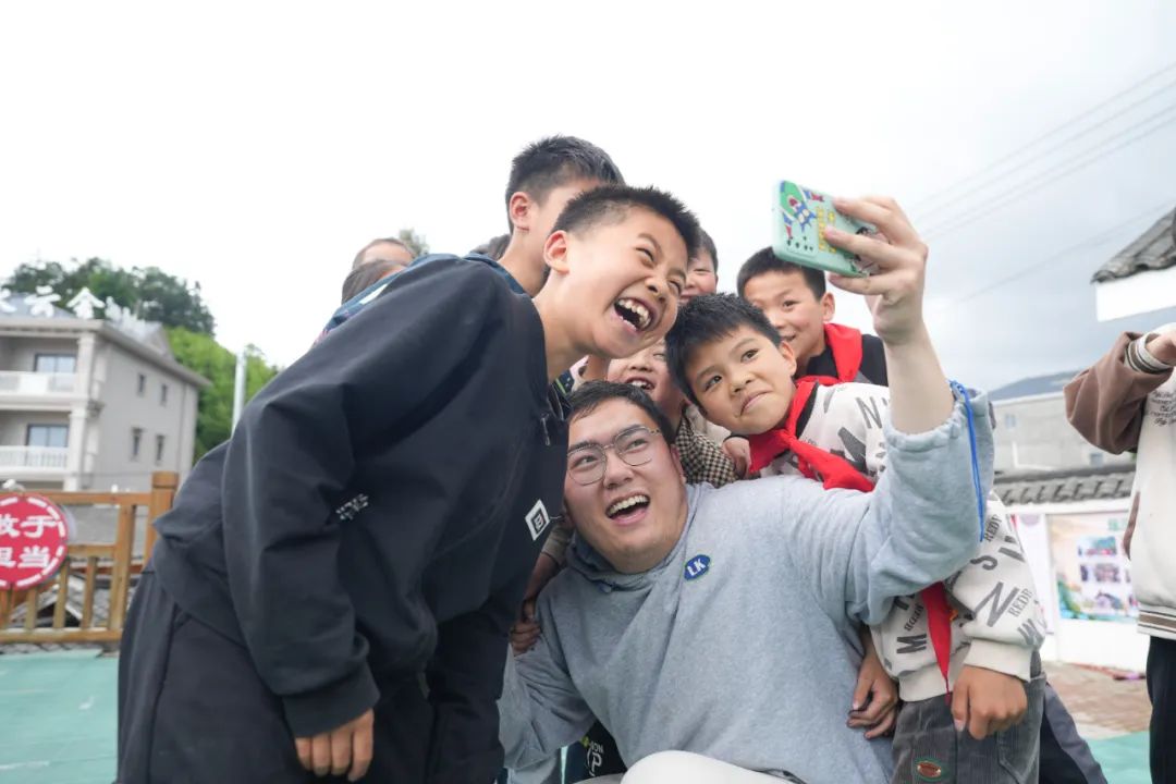 2024年6月28日,隆回縣虎形山瑤族鄉(xiāng)中心學(xué)校草原村教學(xué)點,來自湖南大學(xué)的志愿者徐逸風(fēng)與學(xué)生們合影。