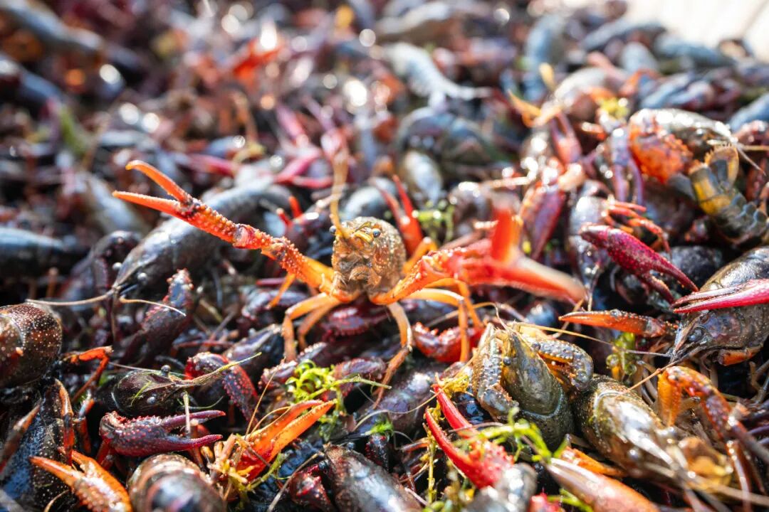 在湖南省益陽(yáng)市南縣南洲鎮(zhèn)班嘴村琴湖農(nóng)業(yè)深水蝦養(yǎng)殖基地拍攝的剛捕撈的小龍蝦。新華社記者 陳思汗 攝