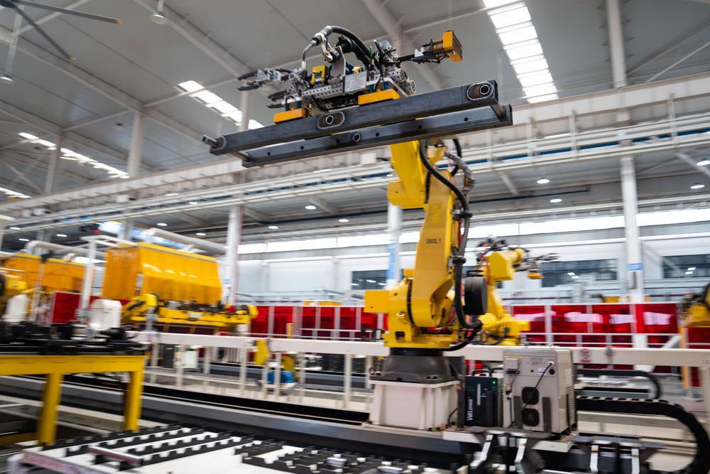 2月7日,在位于寧鄉(xiāng)高新區(qū)的湖南星邦智能裝備股份有限公司高空作業(yè)平臺生產(chǎn)車間,機(jī)械手在抓取裝備零部件。新華社記者 陳思汗攝