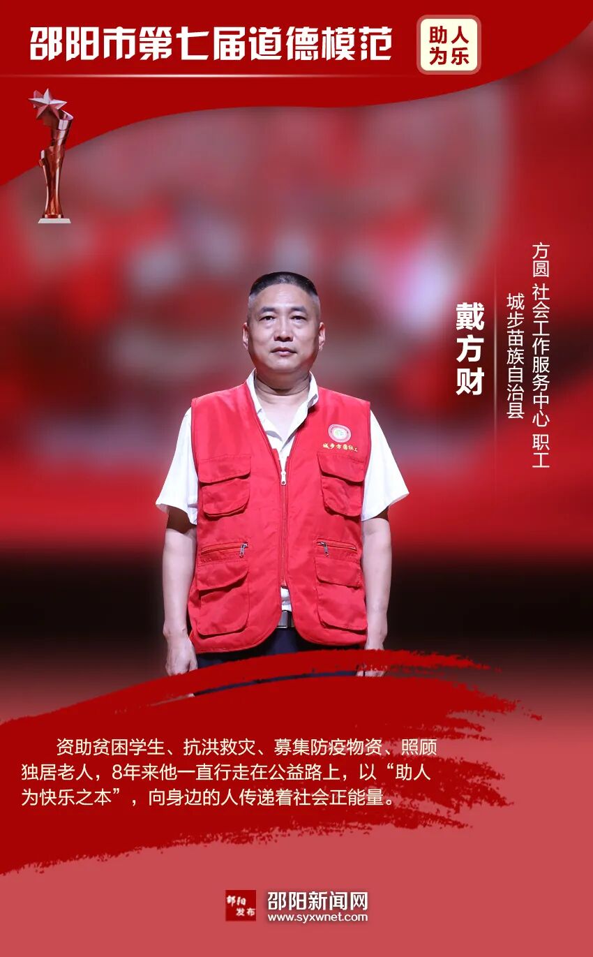 近年來,邵陽市已連續(xù)舉辦了七屆市級道德模范評選活動,共推出140多名“道德模范”,從中走出了4名全國道德模范或提名獎人物、6名省級道德模范或提名獎人物。同時,邵陽市還連續(xù)舉辦了四屆培育和踐行社會主義核心價值觀主題教育“雙十最美”評選活動,共表彰了80個最美單位和最美人物,并從中走出了8名“中國好人”。