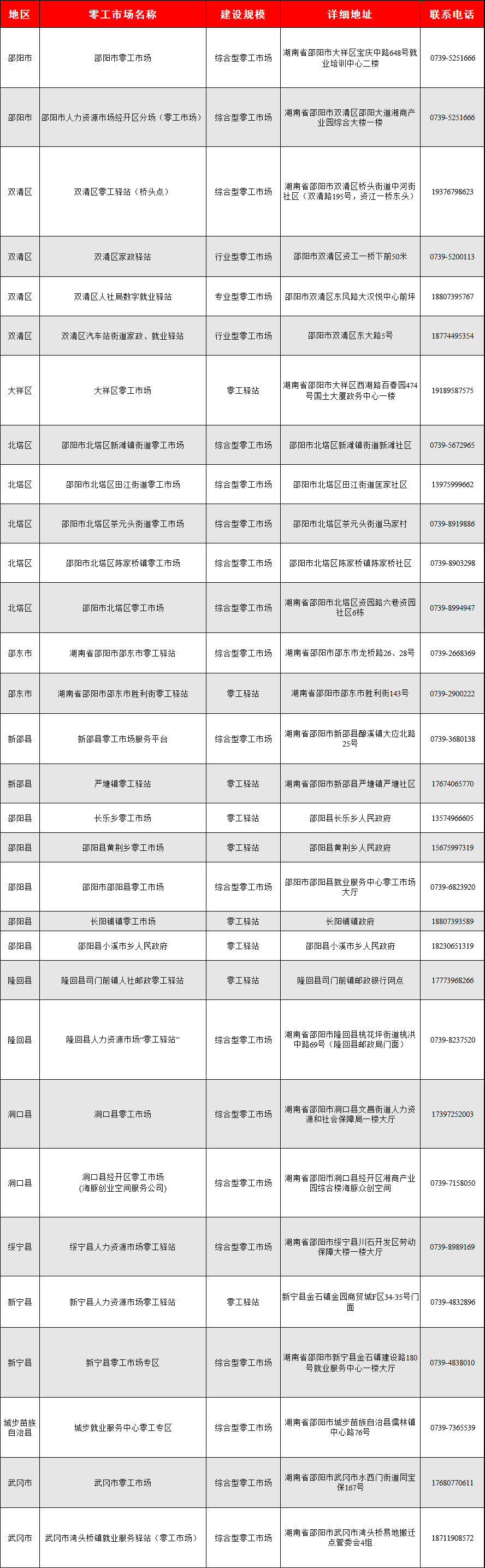 2月12日,省人社廳公布湖南省零工市場(chǎng)(驛站)名錄,邵陽(yáng)市31家零工市場(chǎng)(驛站)上榜。