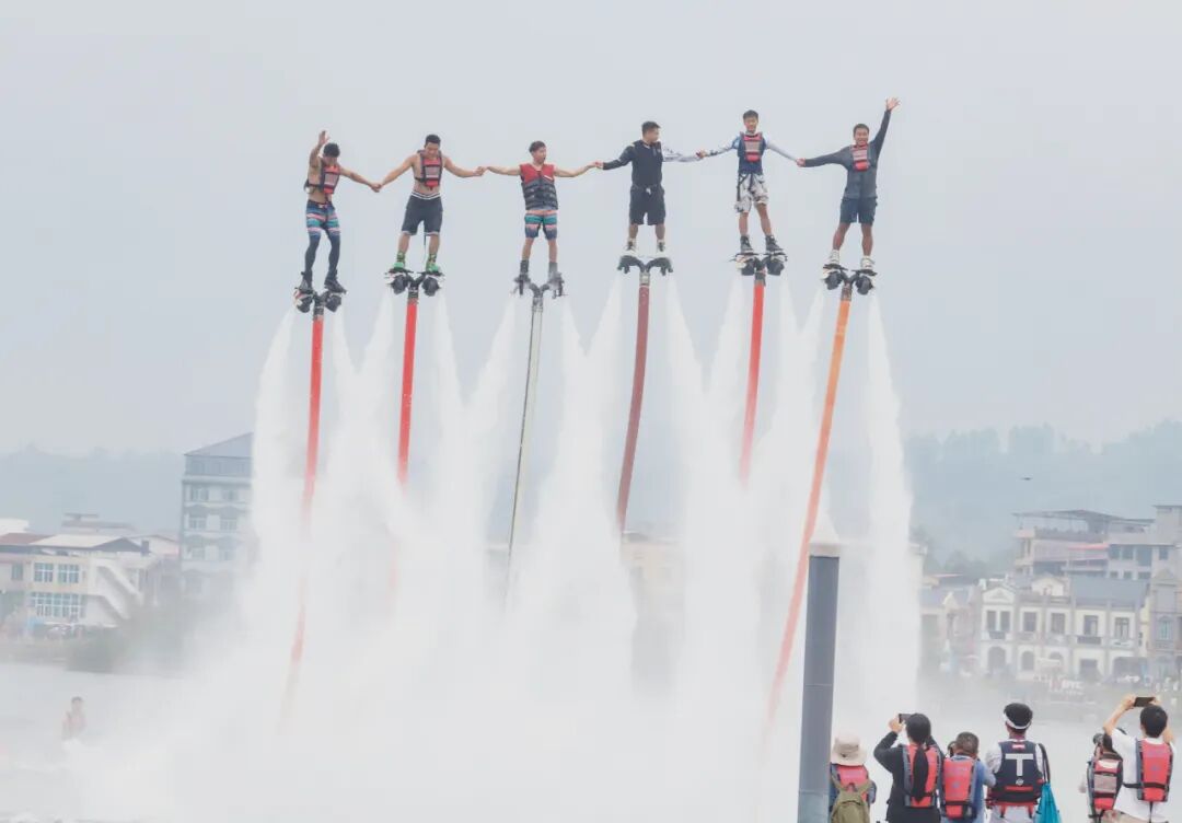 來(lái)自全國(guó)各地的近千名槳板運(yùn)動(dòng)員和槳板運(yùn)動(dòng)愛(ài)好者一同劈波斬浪、揮槳逐夢(mèng),在青山綠水間上演“速度與激情”,為廣大游客奉上了一場(chǎng)精彩紛呈的水上運(yùn)動(dòng)盛宴。省政協(xié)原副主席張大方宣布開(kāi)幕,市委書記嚴(yán)華出席并為賽事鳴笛發(fā)令。