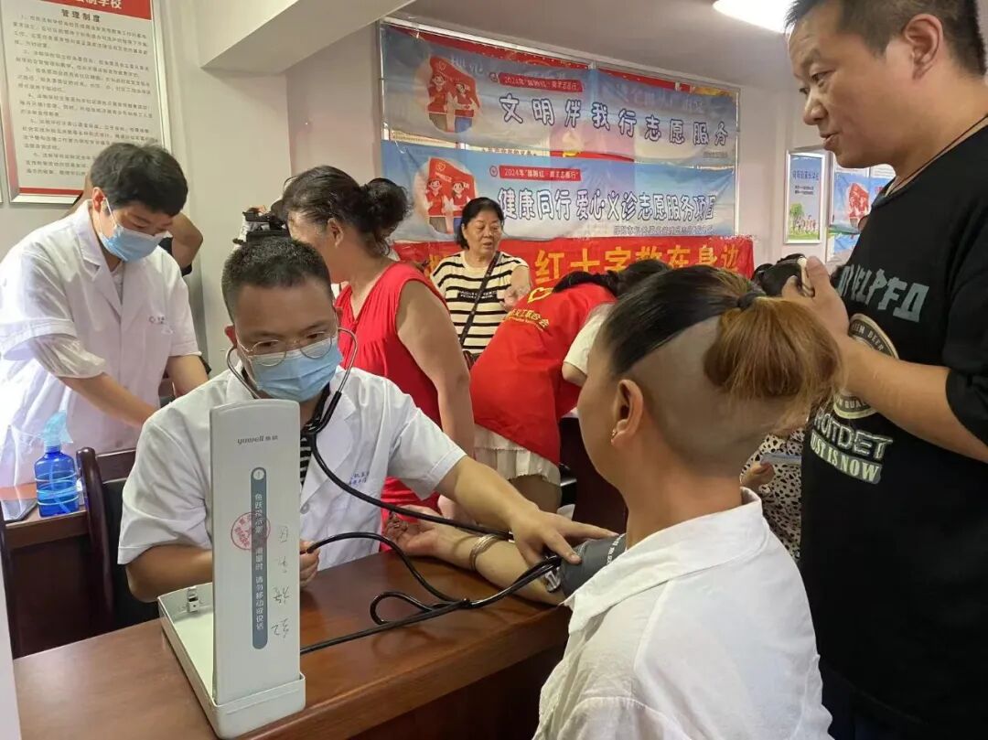 在向陽(yáng)街社區(qū)的愛心義診區(qū)域,醫(yī)生為居民們量血壓,提供健康咨詢。60歲的王奶奶在接受檢查后表示:“醫(yī)生的叮囑很貼心?!?/p>