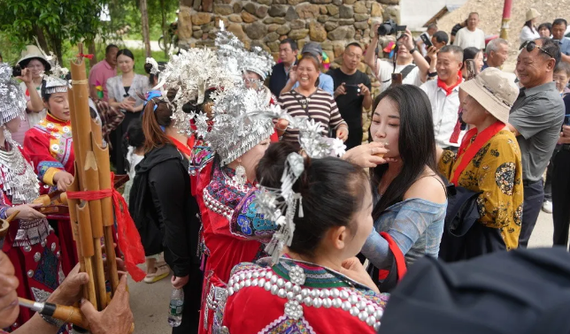 綏寧縣以“四月八姑娘節(jié)”為核心,舉辦“民族團結跑”“超級達村秀”“民族美食節(jié)”等九大活動。花園閣景區(qū)開展回娘家、竹龍表演、跳花跳月、技師雜技表演、篝火晚會等傳統(tǒng)活動;大園古苗寨開展苗王“千人苗家姑娘”進寨迎接儀式、攔門酒、舞草龍、楊金花情景劇演出、摸魚、篝火晚會等民俗表演;寨市古鎮(zhèn)開展萬花茶、剪紙等民俗傳統(tǒng)手工藝及竹竿舞、同心鞋現場表演體驗;上堡侗寨開展攔門酒、搶繡球、擠油尖、摸魚體驗等體驗活動,系列特色民俗活動為游客們呈現了一場視覺與聽覺的盛宴。